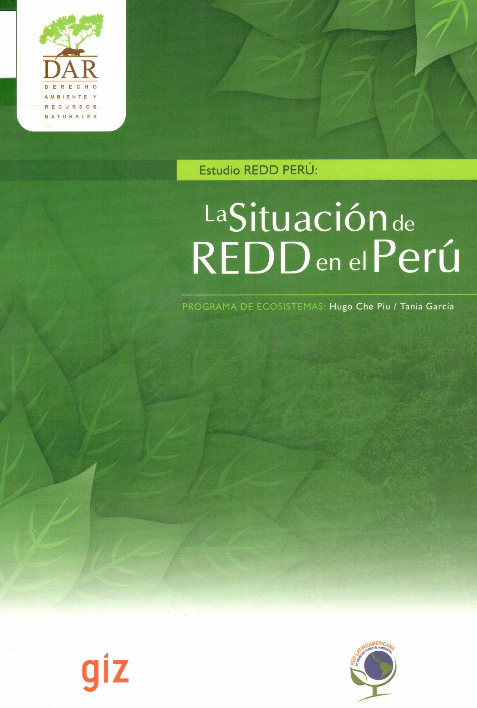 | Che Piu, Hugo; García, Tania. Estudio REDD Perú: la situación de REDD en el Perú. --Lima: DAR; GIZ: 2011. # Ingreso:18390 73 ilus., maps.