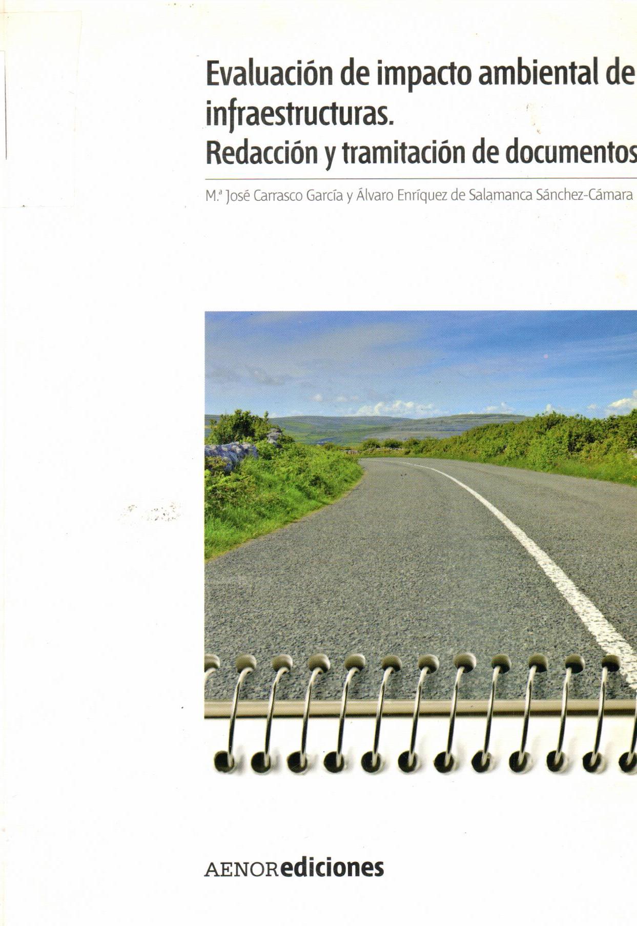 | Carrasco García, María José; Salamanca Sánchez-Cámara, Alvaro Enríquez de. Evaluación de impacto ambiental de infraestructuras: redacción y tramitación de documentos. --Madrid: AENOR: 2010. # Ingreso:13962 286