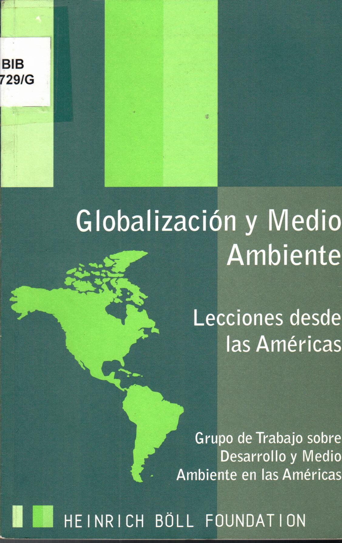 | Grupo de Trabajo sobre Desarrollo y Medio Ambiente en las Américas. Globalización y medio ambiente: lecciones desde las Américas. --Washington: Heinrich Boll Foundation North: 2005. # Ingreso:13635 56
