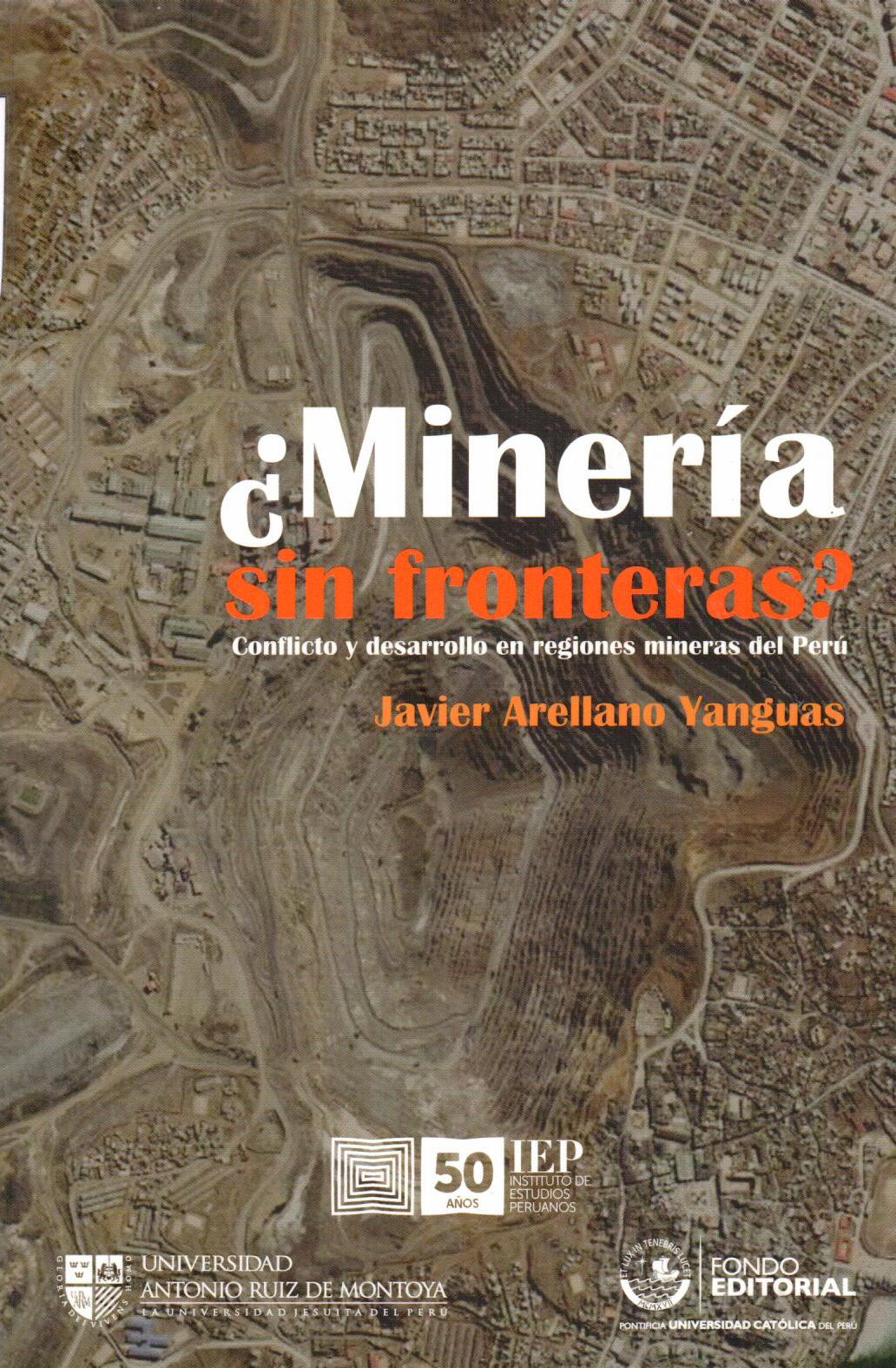 Arellano Yanguas, Javier. Minería sin fronteras: Conflicto y desarrollo en regiones mineras del Perú. --Lima: IEP; PUCP; Universidad Antonio Ruiz de Montoya: 2011. 7# Ingreso:13002 324