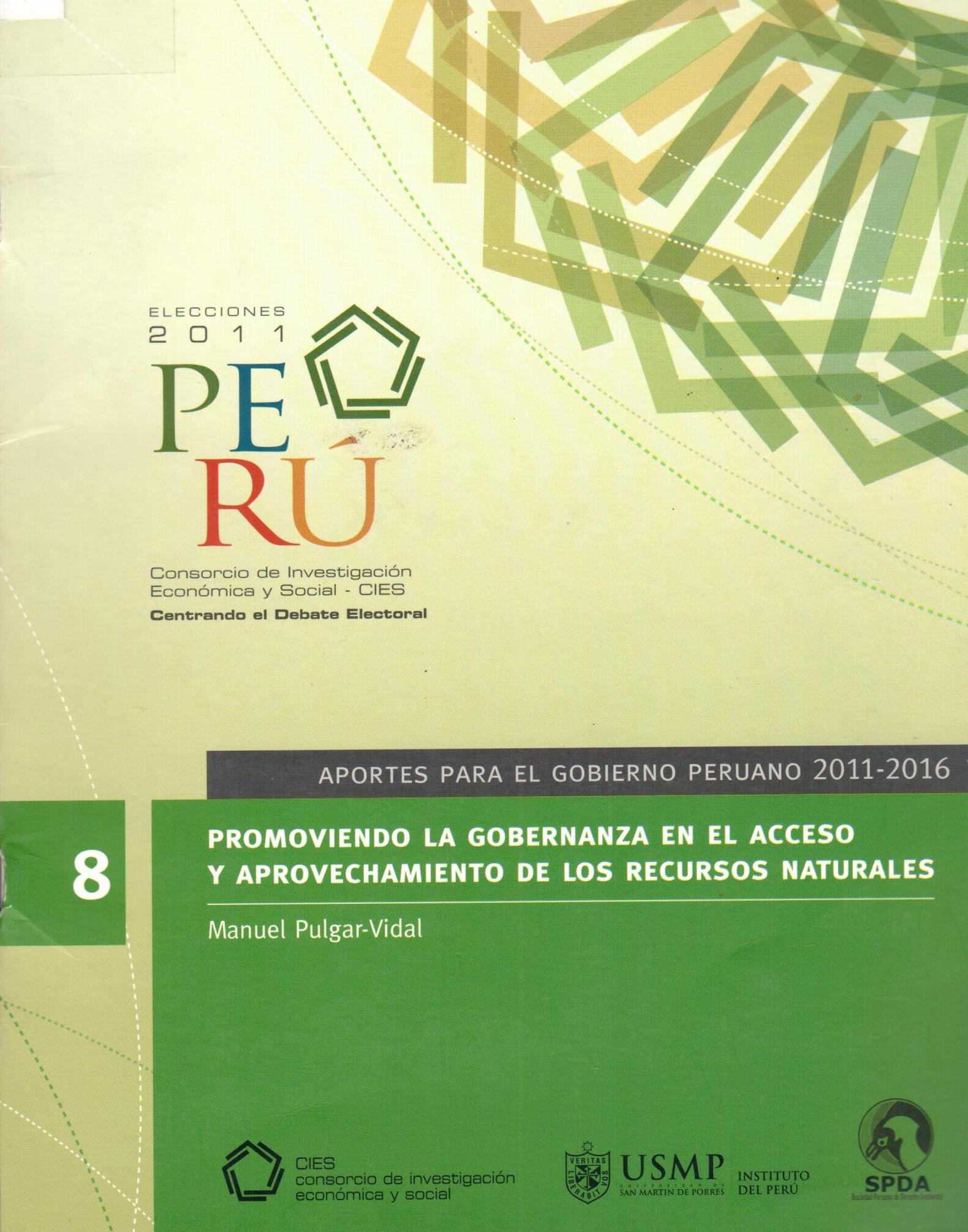 | Pulgar-Vidal, Manuel. Promoviendo la gobernanza en el acceso y aprovechamiento de los recursos naturales. --Lima: Consorcio de Investigación Económica y Social: 2011. # Ingreso:18253 46