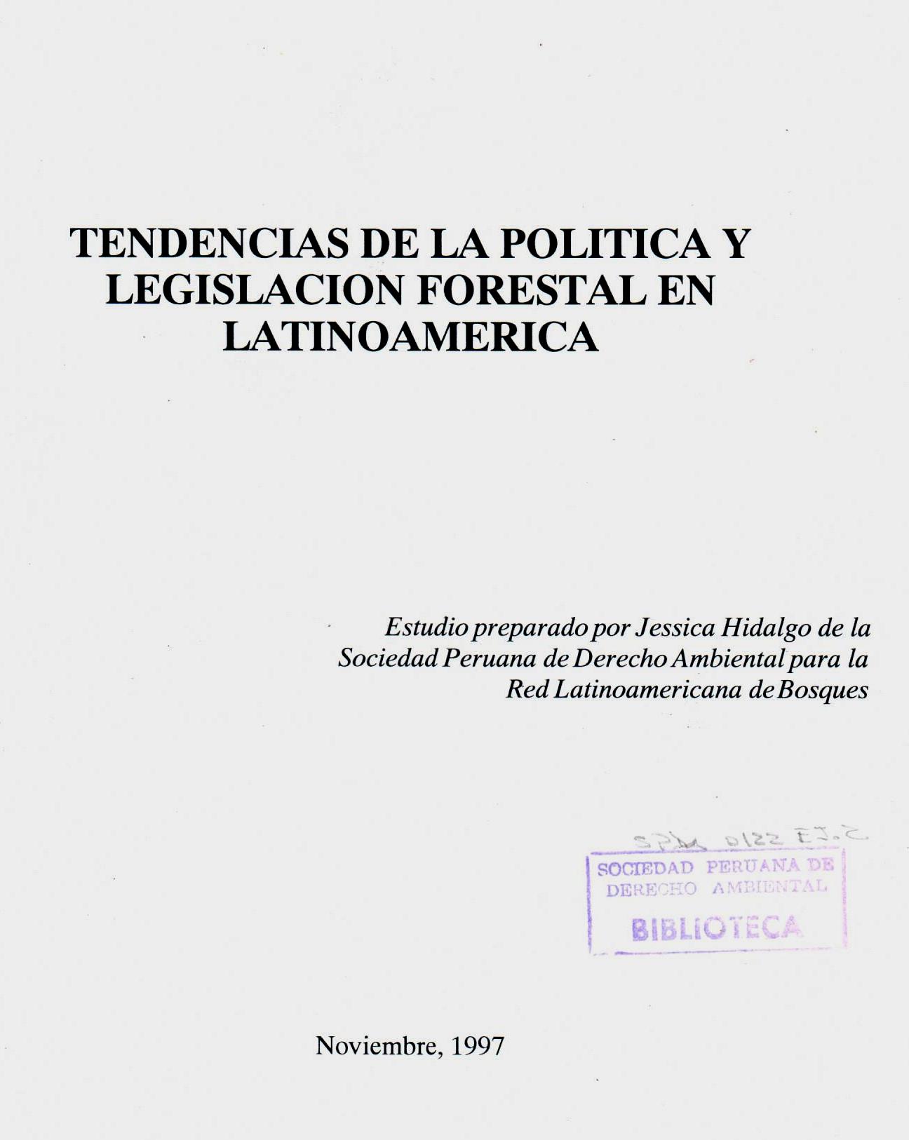 | Hidalgo, Jessica. Tendencias de la política y legislación forestal en Latinoamerica. --Lima: SPDA; Red Latinoamericana de Bosques: 1997. # Ingreso:12135 34
