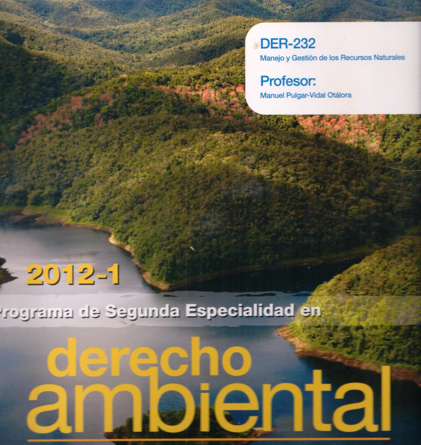 | 2012 | | Notas: | Profesor responsable: Manuel Pulgar-Vidal | | Palabras Claves: | DIPLOMA; DERECHO; RECURSOS NATURALES;