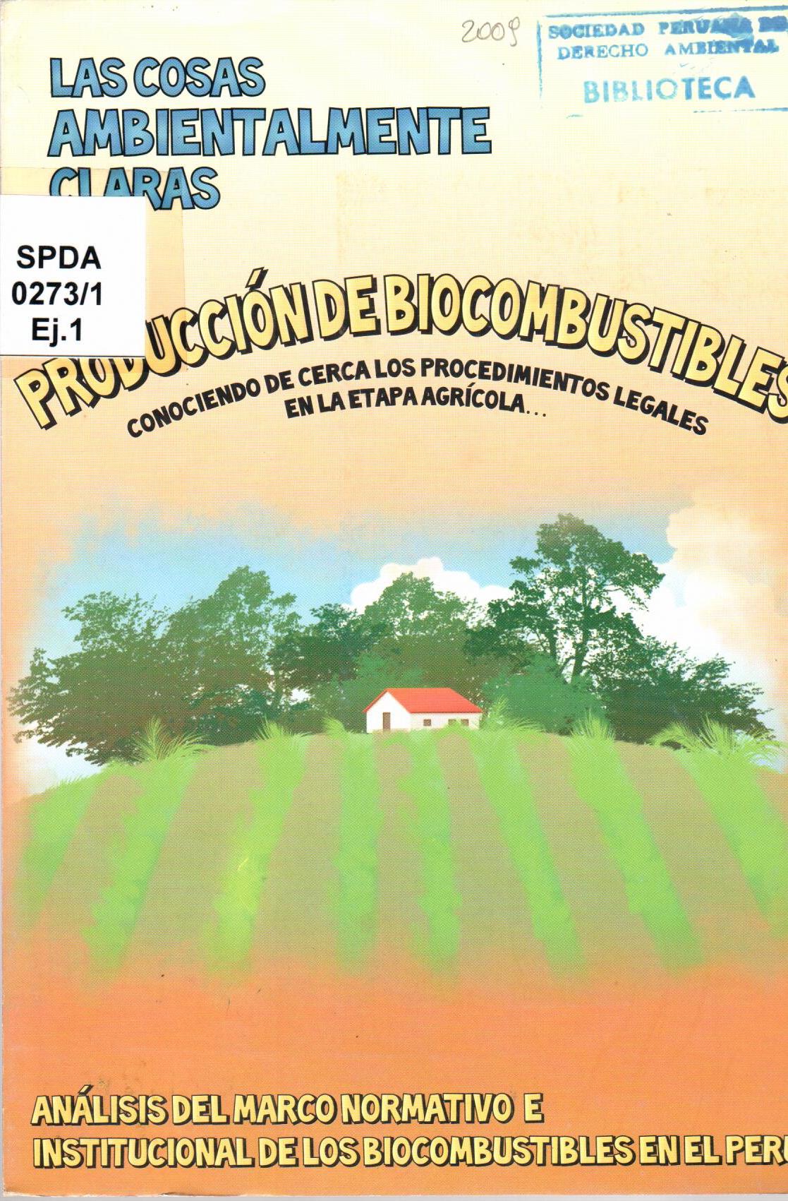 Programa de Política y Gestión Ambiental. Producción de biocombustibles: conociendo de cerca los procedimientos legales en la etapa agrícola. --Lima: SPDA; Programa de Subvenciones para Ecosistemas: 2009. 1# Ingreso:11932