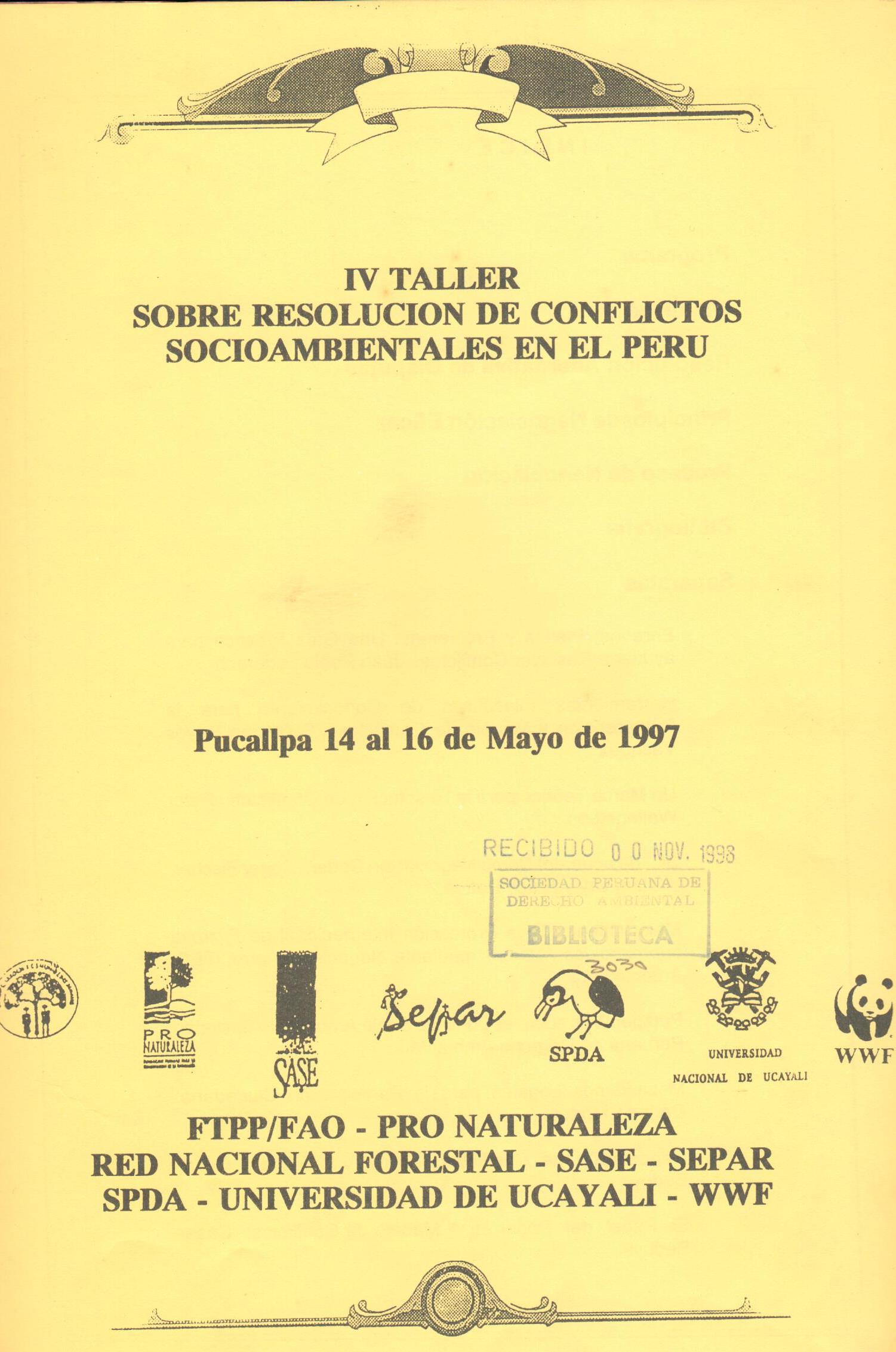 | FTPP-FAO; SASE; Sociedad Peruana de Derecho Ambiental; WWF. Resolución de conflictos en el Perú. --Lima: 1996. # Ingreso:11257 diagrs.