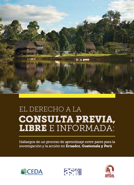 | Mayén, Guisela; Erazo, Daniela; Lanegra, Ivan. El derecho a la consulta previa, libre e informada: hallazgos de un proceso de aprendizaje entre pares para la investigación y la acción en Ecuador, Guatemala y Perú. --Lima: SPDA; CEDA; ASIES: 2014. # Ingreso:19014 138 pág.
