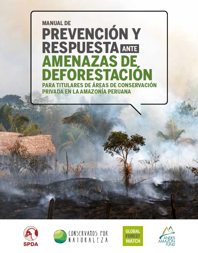 | Zari, Luis; Grandez, Percy; Monteferri, Bruno. Manual de prevención y respuestas ante amenazas de deforestación para titulares de áreas de conservación privada en la Amazonía peruana. --2a ed.. --Lima: SPDA; Conservamos por Naturaleza: 2018. # Ingreso:19345 60 pág. ilus., tabls., maps..