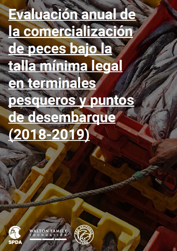 | Velez-Zuazo, Ximena; Alfaro-Shigueto, Joanna; Castagnino, Fabio; Cordova, Francisco . Evaluación anual de la comercialización de peces bajo la talla mínima legal en terminales pesqueros y puntos de desembarque, 2018-2019. --Lima: SPDA; Walton Family Foundation: 2020. # Ingreso:19513 47 pág. Ilus.; tabls.; map..