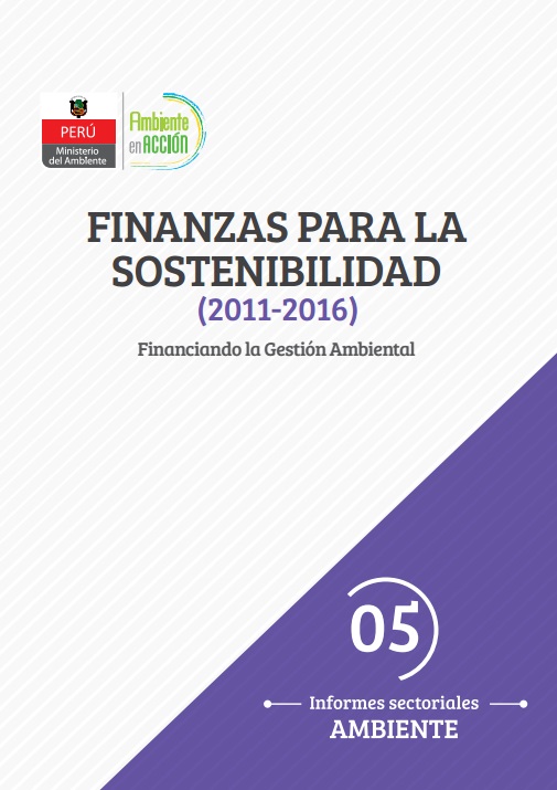 Perú. Ministerio del Ambiente. Finanzas para la sostenibilidad, 2011-2016: financiando la gestión ambiental. --Lima: MINAM: 2016. 5# Ingreso:10517 277 pág. ilus., tabls..