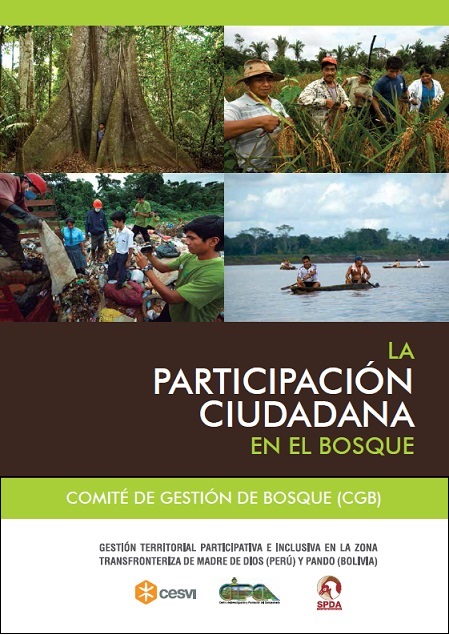 | Sociedad Peruana de Derecho Ambiental. La participación ciudadana en el bosque: Gestión territorial participativa e inclusiva en la zona transfronteriza de Madre de Dios, Perú y Pando, Bolivia. --Lima: SPDA: 2014. # Ingreso:10549